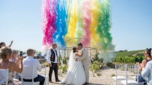 - Bezpečné pro šaty: Při dodržení vzdálenosti se dým rozptýlí ve vzduchu a nezanechá na svatebních šatech ani oblecích žádné stopy.